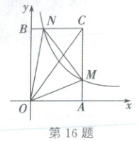 16.B解析:根据题意,设点M的坐标为(a,$\frac{1}{a}$),点N的坐标为(b,$\frac{1}{b}$),则A(a,0),B(0,$\frac{1}{b}$),C(a,$\frac{1}{b}$).