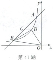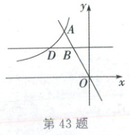 43. (2025·自贡)如图,正比例函数$y = kx$的图象与函数$y = -\frac{8}{x}$($x < 0$)的图象交于点$A(-2,a)$,$B$是线段$OA$上异于端点的一点,过点$B$作$y$轴的垂线,交函数$y = -\frac{8}{x}$($x < 0$)的图象于点$D$.