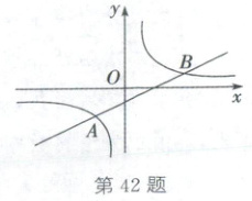 42. (2025·遂宁)如图,一次函数$y = mx + n$($m$,$n$为常数,$m \neq 0$)的图象与反比例函数$y = \frac{k}{x}$($k \neq 0$)的图象交于$A(-2,-2)$,$B(a,1)$两点.