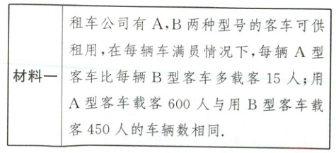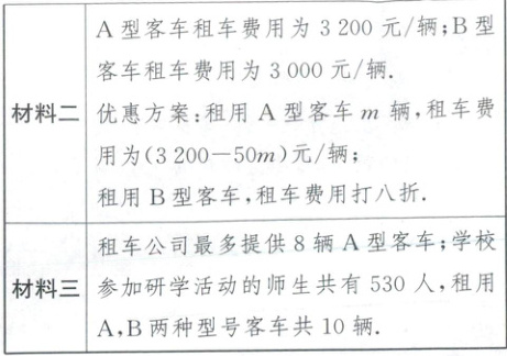 12. (2025·南充)学校计划租用客车送师生到某红色基地,参加主题为“缅怀先烈,强国有我”的研学活动,请阅读下列材料,并完成相关问题。
