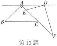 13. (2025·福建)某数学兴趣小组为探究平行线的有关性质, 将一副三角尺按如图所示的方式摆放, 其中点 $ A, E, C, F $ 在同一条直线上, $ \angle BAC = \angle EDF = 90^{\circ}, \angle B = 45^{\circ}, \angle DEF = 60^{\circ} $. 当 $ AD // BC $ 时, $ \angle ADE $ 的度数为 (