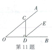 11. (2025·辽宁)如图, 点 $ C $ 在 $ \angle AOB $ 的边 $ OA $ 上, $ CD \perp OB $, 垂足为 $ D, DE // OA $, 若 $ \angle EDB = 40^{\circ} $, 则 $ \angle ACD $ 的度数为 (