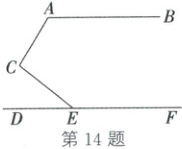 14. (2025·凉山)如图, $ DF // AB, \angle BAC = 120^{\circ}, \angle ACE = 100^{\circ} $, 则 $ \angle CED $ 的度数为 (