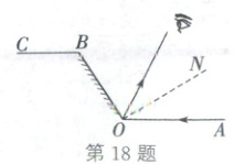 18. (2025·深圳)如图所示为小颖在试鞋镜前的光路图, 入射光线 $ AO $ 经平面镜反射后入眼. 若 $ CB // OA, \angle CBO = 122^{\circ}, \angle BON = 90^{\circ} $, 则入射角 $ \angle AON $ 的度数为 (