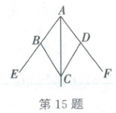 15. $\because \angle CBE = \angle CDF$,$\therefore 180^{\circ}-\angle CBE = 180^{\circ}-\angle CDF$。