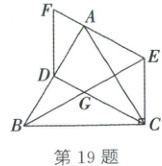 19. (2025·福建)如图,△ABC 是等边三角形,D 是 AB 的中点,CE⊥BC,垂足为 C,EF 是由 CD 沿 CE 方向平移得到的,连接 DF. 已知 EF 过点 A,BE 交 CD 于点 G.