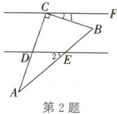 2. (2025·威海)如图,直线$CF// DE$,$\angle ACB=90^{\circ}$,$\angle A=30^{\circ}$.若$\angle 1=18^{\circ}$,则$\angle 2$的度数为(