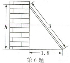 6. (2025·连云港)如图(单位:$\mathrm{m}$),长为$3\mathrm{m}$的梯子靠在墙上,梯子的底端离墙脚线的距离为$1.8\mathrm{m}$,则$h=$