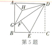 5. (2025·重庆)如图,正方形$ABCD$的边长为2,$E$是$BC$边的中点,连接$DE$,将$\triangle DCE$沿直线$DE$翻折到正方形$ABCD$所在的平面内,得$\triangle DFE$,延长$DF$交$AB$于点$G$.$\angle ADG$和$\angle DAG$的平分线$DH$,$AH$相交于点$H$,连接$GH$,则$\triangle DGH$的面积为(