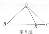 8. (2025·广安)如图,在等腰直角三角形$ABC$中,$\angle BAC=90^{\circ}$,$AB=AC=4$,$D$是$BC$边上的一个动点,连接$AD$,则$AD$长的最小值为