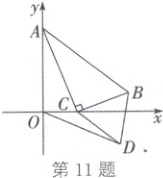 11. (2025·自贡)如图,在平面直角坐标系中,$\mathrm{Rt}\triangle ABC$的顶点$C$,$A$分别在$x$轴、$y$轴正半轴上,$\angle ACB=90^{\circ}$,$\angle BAC=30^{\circ}$,$BC=2$.以$BC$为边作等边三角形$BCD$,连接$OD$,则$OD$长的最大值为