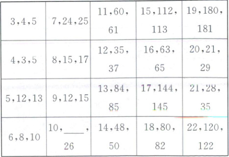 10. (2025·扬州)清代扬州数学家罗士琳痴迷于勾股定理的研究,提出了推算勾股数的“罗士琳法则”.法则的提出,不仅简化了勾股数的生成过程,也体现了中国传统数学在数论领域的贡献.由此法则写出了下列几组勾股数:①$3$,$4$,$5$;②$5$,$12$,$13$;③$7$,$24$,$25$;④$9$,$40$,$41·s·s$根据上述规律,写出第⑤组勾股数为