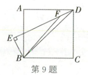 9. (2025·自贡)如图,正方形$ABCD$的边长为6,以对角线$BD$为斜边作$Rt\triangle BED$,$\angle E = 90^{\circ}$,点$F$在$DE$上,连接$BF$。若$2BE = 3DF$,则$BF$长的最小值为(