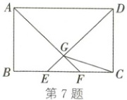7. (2025·广东)如图,在矩形$ABCD$中,$E$,$F$是边$BC$上的三等分点,连接$DE$,$AF$相交于点$G$,连接$CG$。若$AB = 8$,$BC = 12$,则$\tan\angle GCF$的值是(