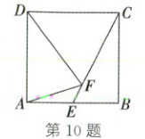 10. (2025·泸州)如图,在边长为2的正方形$ABCD$中,$E$为$AB$的中点,$F$为$CE$上的点,且$DF = DC$,则$AF$的长为(