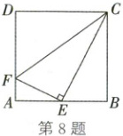 8. (2025·陕西)如图,正方形$ABCD$的边长为4,$E$为$AB$的中点,点$F$在$AD$上,$EF\perp EC$,则$\triangle CEF$的面积为(