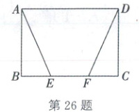 26. (2025·吉林)如图,在矩形$ABCD$中,点$E$,$F$在边$BC$上,连接$AE$,$DF$,$\angle BAE=\angle CDF$。