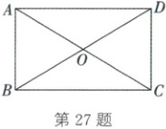 27. (2025·云南)如图,在$\triangle ABC$中,$\angle ABC = 90^{\circ}$,$O$是$AC$的中点,延长$BO$至点$D$,使$OD = OB$,连接$AD$,$CD$。记$AB = a$,$BC = b$,$\triangle AOB$的周长为$l_{1}$,$\triangle BOC$的周长为$l_{2}$,四边形$ABCD$的周长为$l_{3}$。
