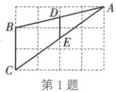 1. (2025·河南)在如图所示的网格中,每个小正方形的边长均为1,$\triangle ABC$的三个顶点均在网格线的交点上,点$D$,$E$分别是边$BA$,$CA$与网格线的交点,连接$DE$,则$DE$的长为(