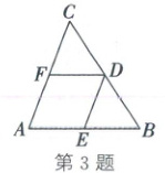3. (2025·广东)如图,$D$,$E$,$F$分别是$\triangle ABC$各边的中点,$\angle A=70^{\circ}$,则$\angle EDF$的度数为(