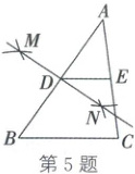 5. (2025·湖南)如图,在$\triangle ABC$中,$BC=6$,$E$是$AC$的中点,分别以点$A$,$B$为圆心,大于$\frac{1}{2}AB$的长为半径画弧,两弧相交于点$M$,$N$,直线$MN$交$AB$于点$D$,连接$DE$,则$DE$的长是