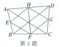 4. (2025·德阳)如图,$E$,$F$,$G$,$H$分别是四边形$ABCD$的边$AB$,$BC$,$CD$,$DA$的中点,若$BD=AC$,四边形$EFGH$的面积为24,且$HF=6$,则$GH$的长为(