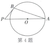 4. (2025·安徽)如图,AB 是⊙O 的弦,PB 与⊙O 相切于点 B,圆心 O 在线段 PA 上. 已知∠P = 50°,则∠PAB 的度数为