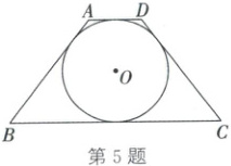 5. (2025·泸州)如图,在梯形 ABCD 中,AD//BC,AB = CD = 10,⊙O 与梯形 ABCD 的各边都相切,且⊙O 的面积为 16π,则点 B 到 CD 的距离为