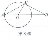 8. (2025·湖南)如图,△ABC 的顶点 A,C 在⊙O 上,圆心 O 在边 AB 上,∠ACB = 120°,BC 与⊙O 相切于点 C,连接 OC.