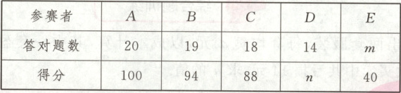 (1)5,-1;由A可知,答对一题得5分,由B可知,答错一题得分为94-95=-1(分);