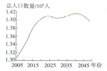 读下页我国2005—2050年人口变化趋势(含预测)图,完成1~3题。
