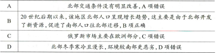 C 俄罗斯市场主要在欧洲部分,C项错误