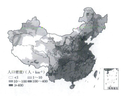 (1) 自然因素是影响人口分布的最基本因素,我国东部地区气候条件适宜,多平原,人口较为密集,西部地区多高山且气候干旱,自然环境较为恶劣,人口较少。故我国的人口分布“东多西少”。