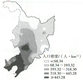 (1)描述我国东北地区人口密度的分布特征。(6分)