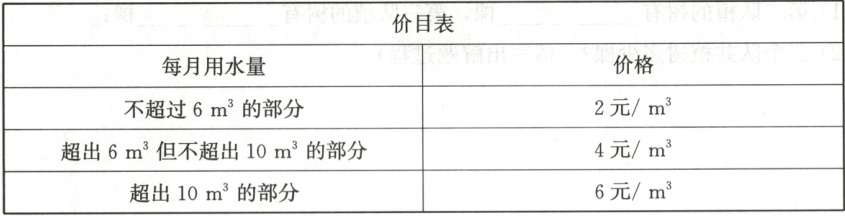 (2)若该户居民3月的用水量为a m³(其中6<a≤10),则应缴纳水费多少元?(用含a的式子表示)