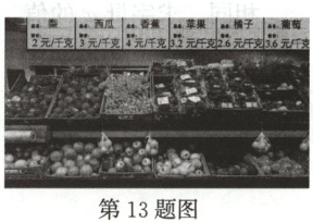 13. 临沂某超市的水果价格如图所示,利用图中的信息,试说明方程$15 - 3.2x = 2.2$的实际意义: