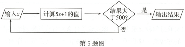 5. 按下面的程序计算,若开始输入的值$x$为正整数,最后输出的结果为656,则满足条件的$x$不同值最多有