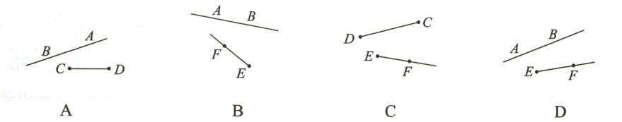 2. 对于直线AB、线段CD和射线EF,在下列各图中能相交的是()
