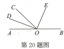 20. (12分)如图,O为直线AB上一点,∠AOC=50°,OD平分∠AOC,∠DOE=90°。