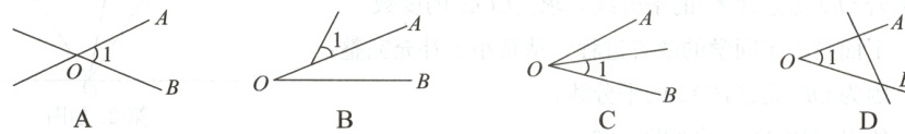2. 下列四个选项中,能用∠1,∠AOB,∠O三种方法表示同一个角的是()