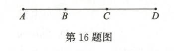 16. 如图,我市一条路线上有四个小区,依次为A,B,C,D,现准备在AD路段上建一个口袋公园M,为使四小区居民到口袋公园M的总路程最短,公园M应建在。