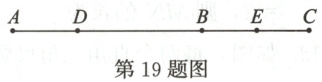 19. (10分)如图,已知$AD=\frac{1}{2}DB$,点E是BC的中点,$BE=\frac{1}{5}AC = 2cm$。求线段DE的长。