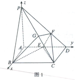 (1)解法一:以$A$为坐标原点,分别以$\overrightarrow{AB},\overrightarrow{AD},\overrightarrow{AP}$的方向为$x$轴、$y$轴、$z$轴的正方向,建立如图1所示的空间直角坐标系,