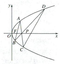 (2) 已知点 $ P(1,0) $,直线 $ AP $,$ BP $ 分别与抛物线 $ C $ 交于点 $ C $,$ D $.
