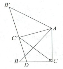 7. (2025·天津)如图,在$\triangle ABC$中,$\angle ACB = 90°$,将$\triangle ABC$绕点$A$顺时针旋转得到$\triangle AB'C'$,点$B$,$C$的对应点分别为$B'$,$C'$,$B'C'$的延长线与边$BC$相交于点$D$,连接$CC'$.若$AC = 4$,$CD = 3$,则线段$CC'$的长为(