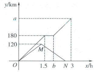 y(单位:km)与轿车的行驶时间x(单位:h)之间的函数图象,结合