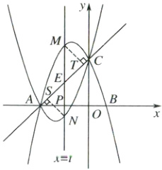 [第1步,作MT⊥AC,NS⊥AC,记直线x=t与直线AC交于点E,求直线AC的表达式,得点E的坐标,从而表示出ME,NE]如图,过点M作MT⊥AC于点T,过点N作NS⊥AC于点S (巧作辅助线:作垂线,构造等腰直角三角形,为求m,n做准备),记直线x=t与直线AC交于点E.