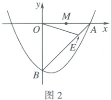①当$ AE = \sqrt{2} $时,请在图 2 中画出线段$ OF $后,求点$ F $的坐标,并判断点$ F $是否在抛物线上,说明理由.