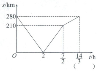 ∴A,B 两地相距280km,故B正确.快车比慢车早$\frac{14}{3}$−$\frac{7}{2}$=$\frac{7}{6}$(h)到达目的地,故C错误.快车的速度为280÷$\frac{7}{2}$=80(km/h),慢车的速度为280÷$\frac{14}{3}$=60(km/h),故D正确,故选C;