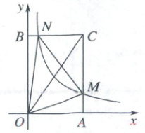 4. (2025·北京)如图,在平面直角坐标系xOy中,A,B分别是横、纵轴正半轴上的动点,四边形OACB是矩形,函数$ y = \frac{1}{x}(x > 0) $的图象与边AC交于点M,与边BC交于点N(M,N不重合).给出下面四个结论: